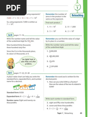 Topic 1 Reteaching Pdf Numbers Elementary Mathematics